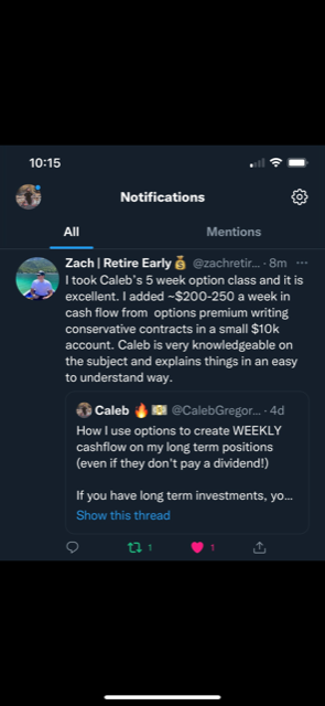 Caleb has worked with hundreds of individuals over the last 2 years to help them turn their investing accounts into cashflowing machines using options.